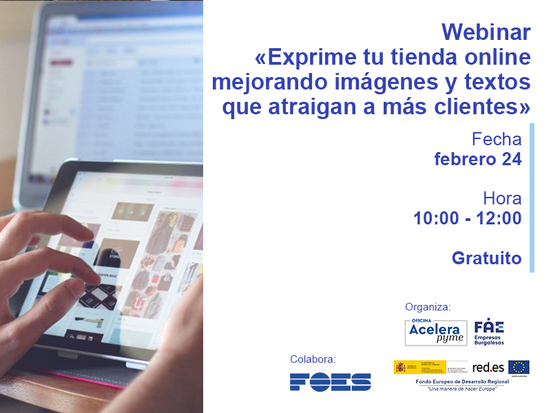 El webinar online gratuito ‘Exprime tu tienda online mejorando imágenes y textos que atraigan a más clientes’ tiene un nivel intermedio y se celebrará mañana, 24 de febrero de 10 a 12 horas. Los interesados deberán inscribirse en la web de FOES (www.foes.es).