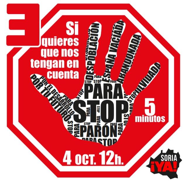 La Federación de Organizaciones Empresariales Sorianas (FOES) secundará el paro de cinco minutos convocado por la Plataforma Soria ¡Ya! a nivel provincial el 4 de octubre a las 12 horas para dar visibilidad a los problemas de la provincia de Soria y reclamar a las administraciones medidas que permitan luchar contra la despoblación.