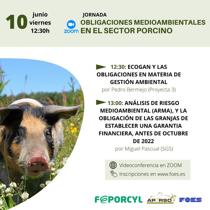 La jornada ‘Obligaciones medioambientales en el sector porcino’ comenzará a las 12.30 horas, una vez finalizada la Asamblea, y se celebrará en formato mixto, tanto presencial como a través de la plataforma ZOOM. Los interesados en seguirla vía online deberán registrarse previamente en la web de FOES (www.foes.es).