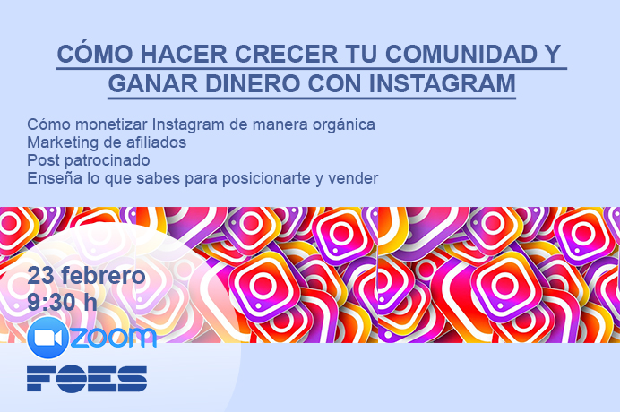 ‘Cómo hacer crecer la comunidad y ganar dinero con Instagram’ se celebrará el miércoles, 23 de febrero a las 9:30 horas, a través de la plataforma ZOOM y previo registro en www.foes.es.